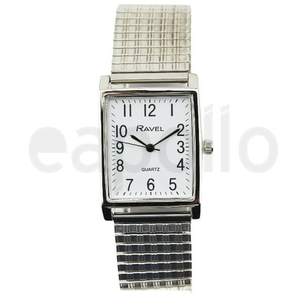 Ravel Men's Rectangular Dial Metal Expander Watch - Silver/White is available to buy in increments of 2