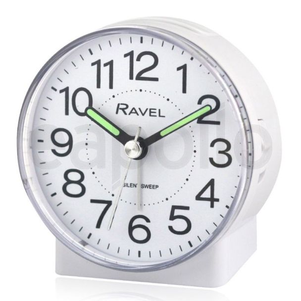 Ravel Mid Sized Bedside Quartz Alarm Clock - White