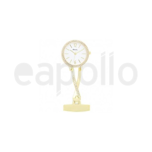 Ravel Nurses Fob Watch with Diamante - Gold & White