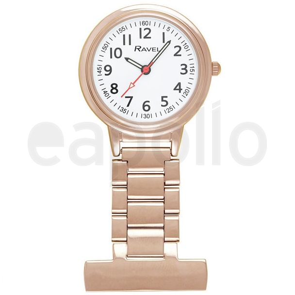 Ravels Easy-Read Nurses Fob Watch- Rose Gold Tone