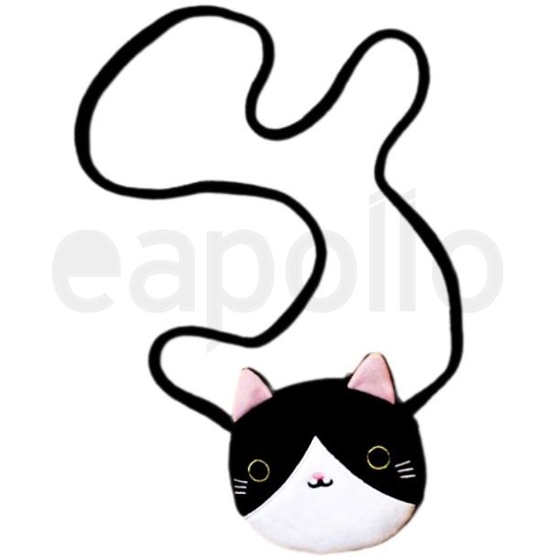 Round Soft Fabric Cat Face Shaped Purse With Strap