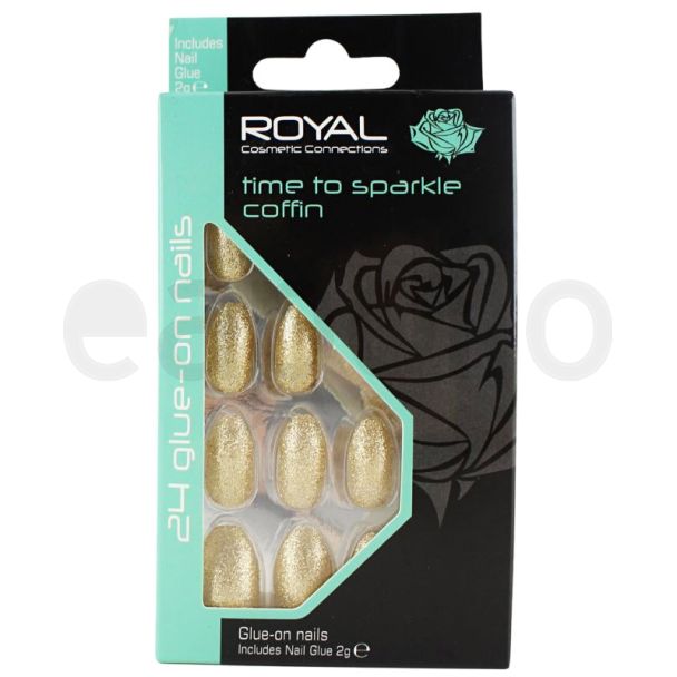 Royal Cosmetics 24 Glue-On Nail Tips - Time To Sparkle Coffin