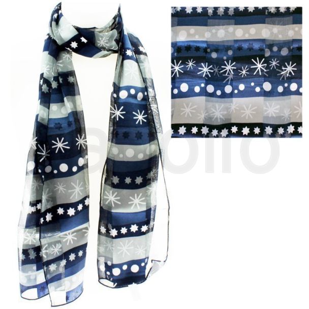 Satin Scarf - Winter Pattern Navy & Silver is available to buy in increments of 6