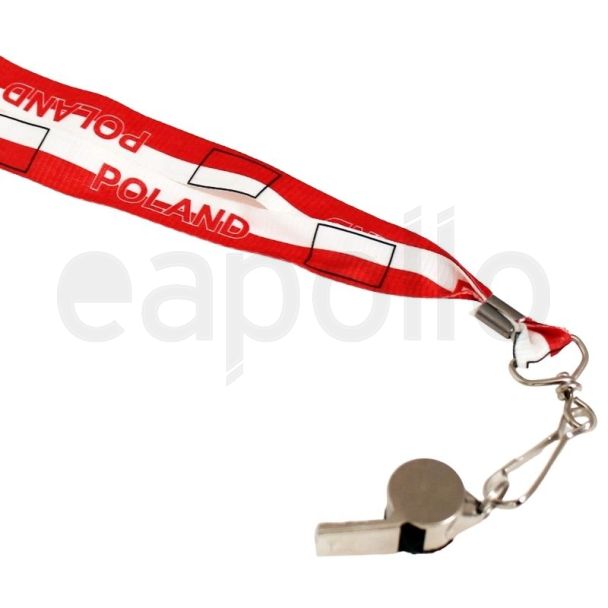 Silver Whistle With Lanyard - Poland Flag Design