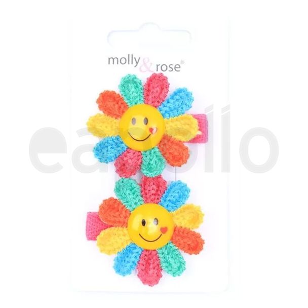 Smiley Face Rainbow Flower Hair Clips 3.5cm - Card of 2
