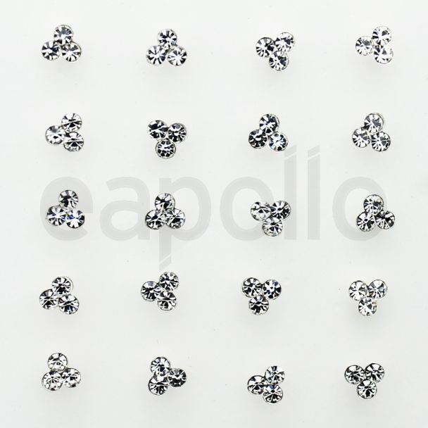 Sterling Silver 3 Flower Design Nose Wires - Clear (3mm)