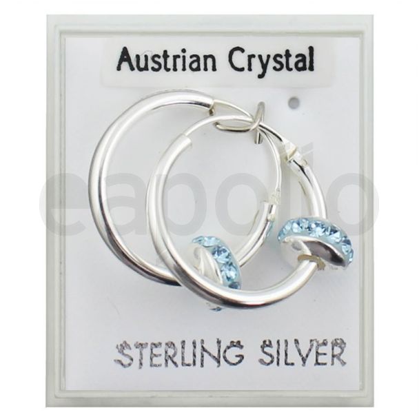 Sterling Silver Austrian Crystal Hoop Earrings - Turquoise (18mm)