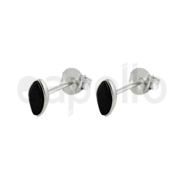 Sterling Silver Black Stone Marquise Shaped Ear Studs