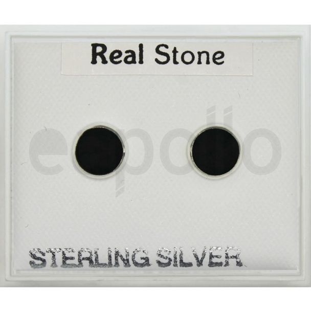 4L-59/ Sterling Silver Round Studs With Black Stone (6mm)