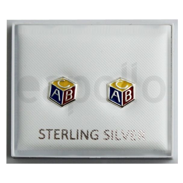 Sterling Silver Hexagon Shaped ABC Design Studs