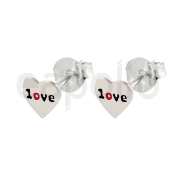 Sterling silver love in a heart studs with butterfly backs.
