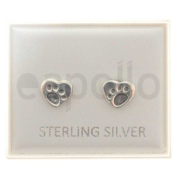 Sterling Silver Paws on Heart Studs - Approx 7mm