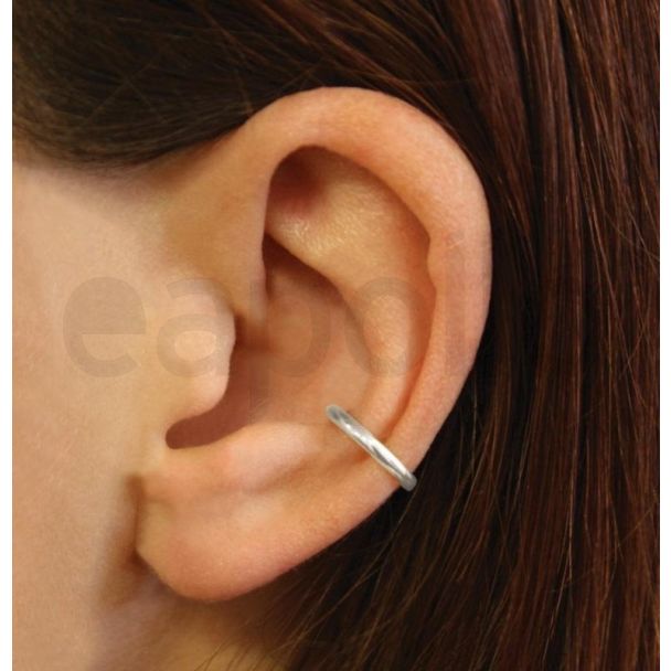 A Sterling Silver Ear Cuff with a plain band for wearing in non-pierced ears.
