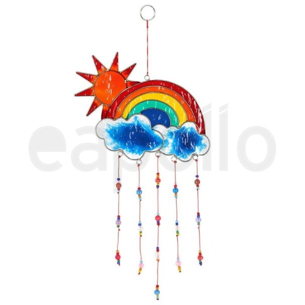 Features a cheerful sun and rainbow with extra beaded accents.